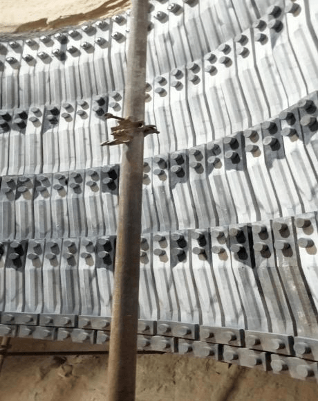 采用多种陶瓷复合材料,经过1800℃左右高温烧结而成,使用温度可达1500℃。具有耐高温、抗冲刷、耐腐蚀、抗结皮、抗震性稳定、重量轻、施工安装方便。结构上,挂片与底座采用特种高温耐腐螺栓链接,耐热钢螺帽的外部采用碳化硅陶瓷保护套家耐火胶泥进行保护;底座与挂条之间加多晶棉,翻盘华处理,是安装结构更为合理;挂片底部采用陶瓷螺栓与陶瓷链接板进行双链接,使其整合内筒更加牢固。