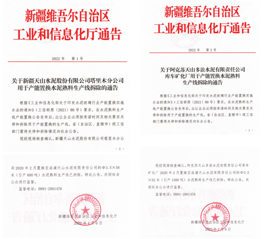 1000t/d熟料产能目标已出让。新疆7条熟料生产线已撤除、拟撤除熟料产能算计474万吨/年