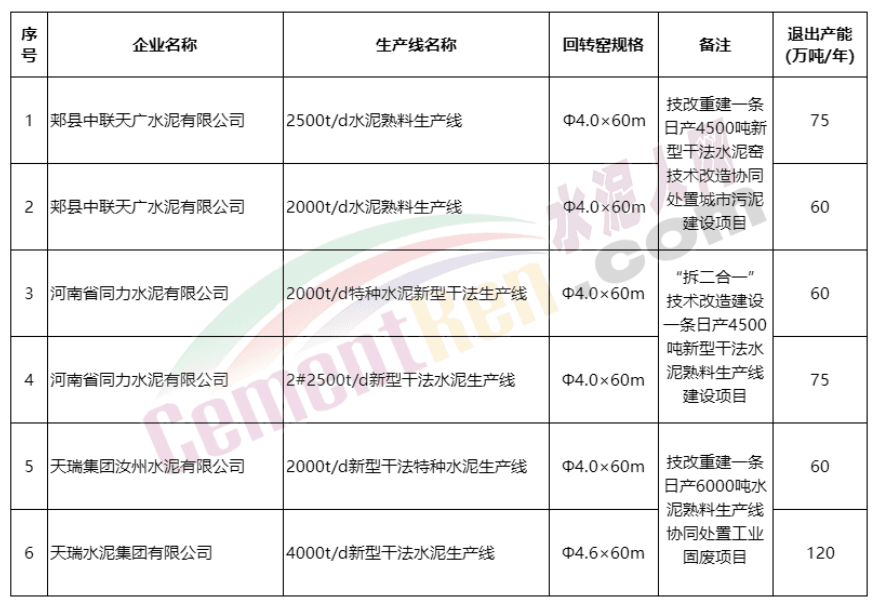 辽宁大鹰水泥集团有限公司、大连永盛水泥制作有限公司别离退出一条4000t/d和一条3000t/d熟料生产线,